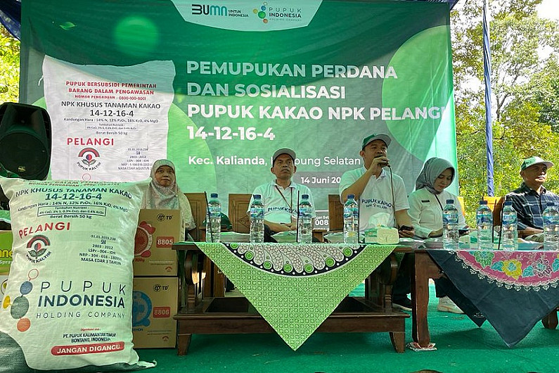 LAMPUNG – PT Pupuk Indonesia (Persero) memastikan bahwa petani kakao yang berada di Provinsi Lampung sudah bisa menebus pupuk bersubsidi jenis NPK Formula Khusus Kakao di kios resmi. Hal ini disampaikan oleh SVP PSO Wilayah Barat Pupuk Indonesia, Fickry Martawisuda pada kegiatan Sosialisasi serta Pemupukan Perdana NPK Formula Khusus Kakao di Penjualan Wilayah Barat yang mencakup seluruh Pulau Sumatera, Jabar & Banten, hingga Jateng & DIY.