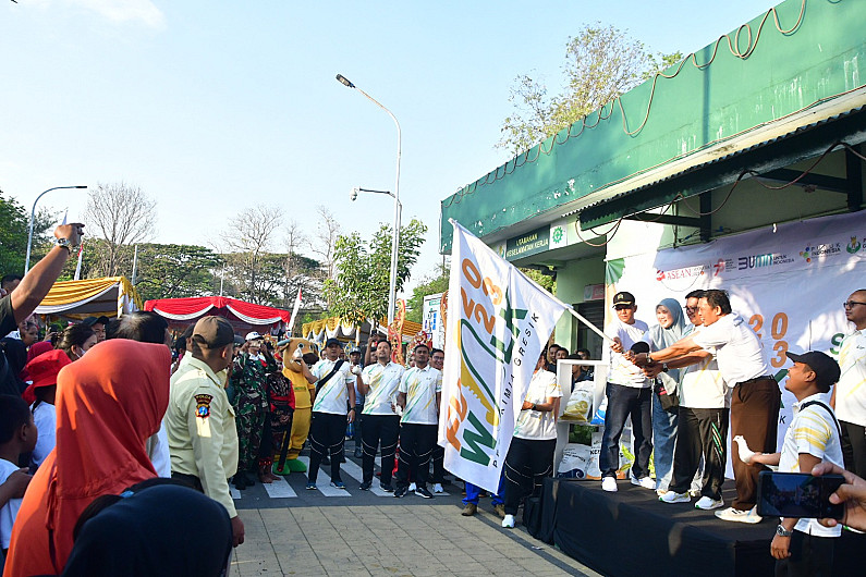 Petrokimia Gresik, perusahaan Solusi Agroindustri anggota holding Pupuk Indonesia menggelar jalan sehat dan pengobatan gratis bersama masyarakat sekitar Instalasi Pengolahan Air (IPA) Petrokimia Gresik Gunungsari di Surabaya, Jawa Timur, Minggu (3/9). Acara dibuka langsung oleh Direktur Utama Petrokimia Gresik, Dwi Satriyo Annurogo bersama Forkopimcam setempat.