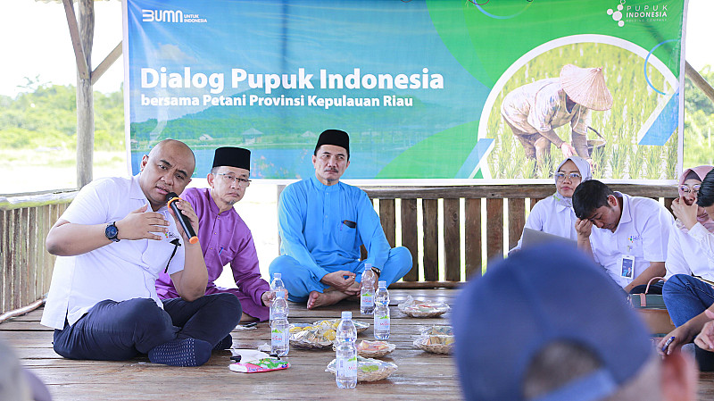 “Kami dari Pupuk Indonesia hari ini datang sebagai bagian dari tugas kami untuk melayani petani dan untuk memastikan ketersediaan pupuk bersubsidi khususnya di Natuna tetap terjaga sesuai dengan tugas yang diberikan Kementerian Pertanian kepada kami selaku BUMN sektor pupuk,” demikian ungkap Direktur Transformasi Bisnis Pupuk Indonesia, Panji Winanteya Ruky (paling kiri pada gambar artikel ini) saat berdialog dengan petani Kecamatan Bunguran Tengah di Kantor Kepala Desa Air Lengit, Kabupaten Natuna, Sabtu (2/12/2023).