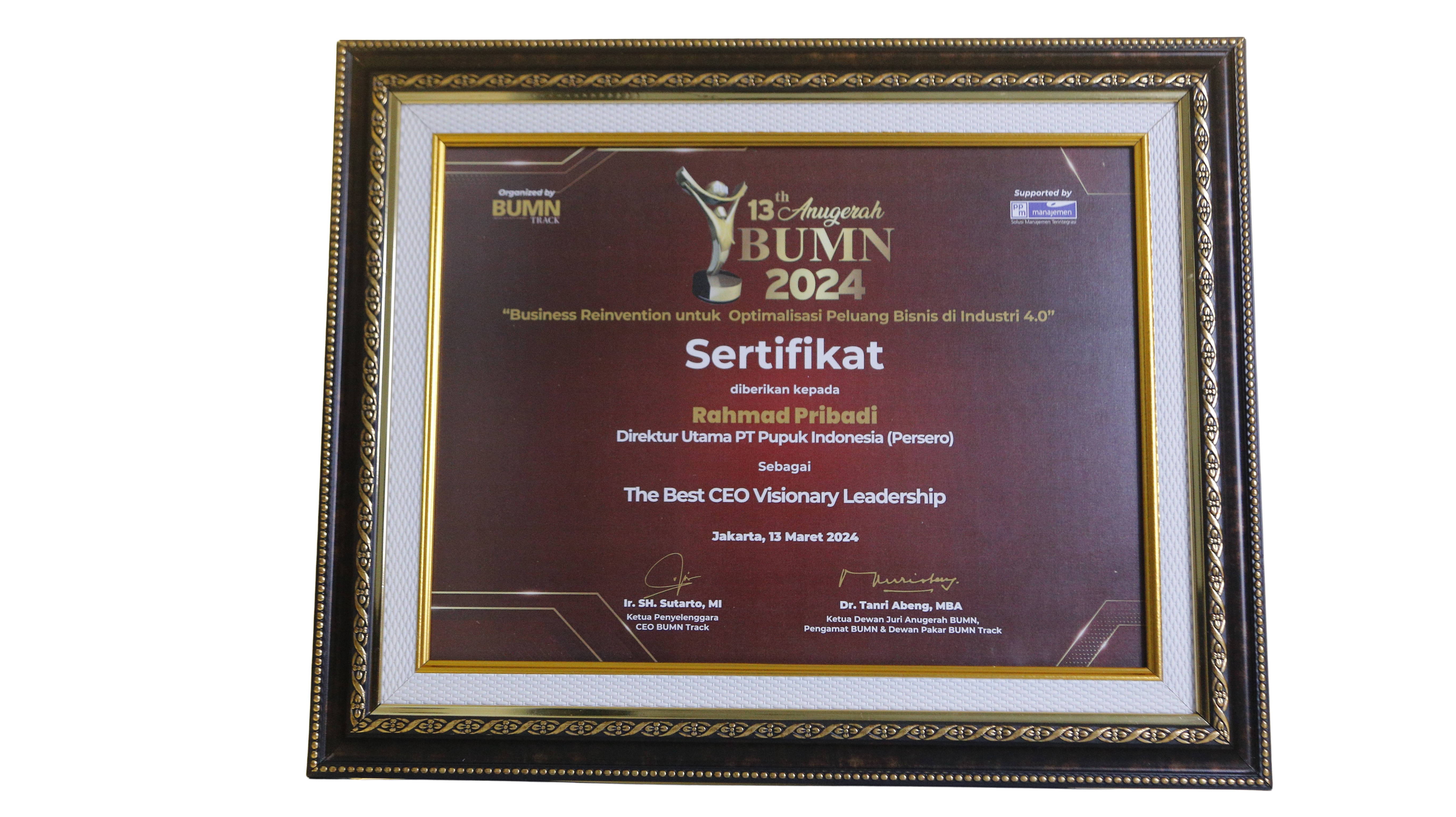 The Best CEO Visionary LeadershipRahmad Pribadi - Direktur Utama PT Pupuk Indonesia (Persero)PT Pupuk Indonesia (Persero)Jakarta, 20 Maret 2025BUMNTrack -