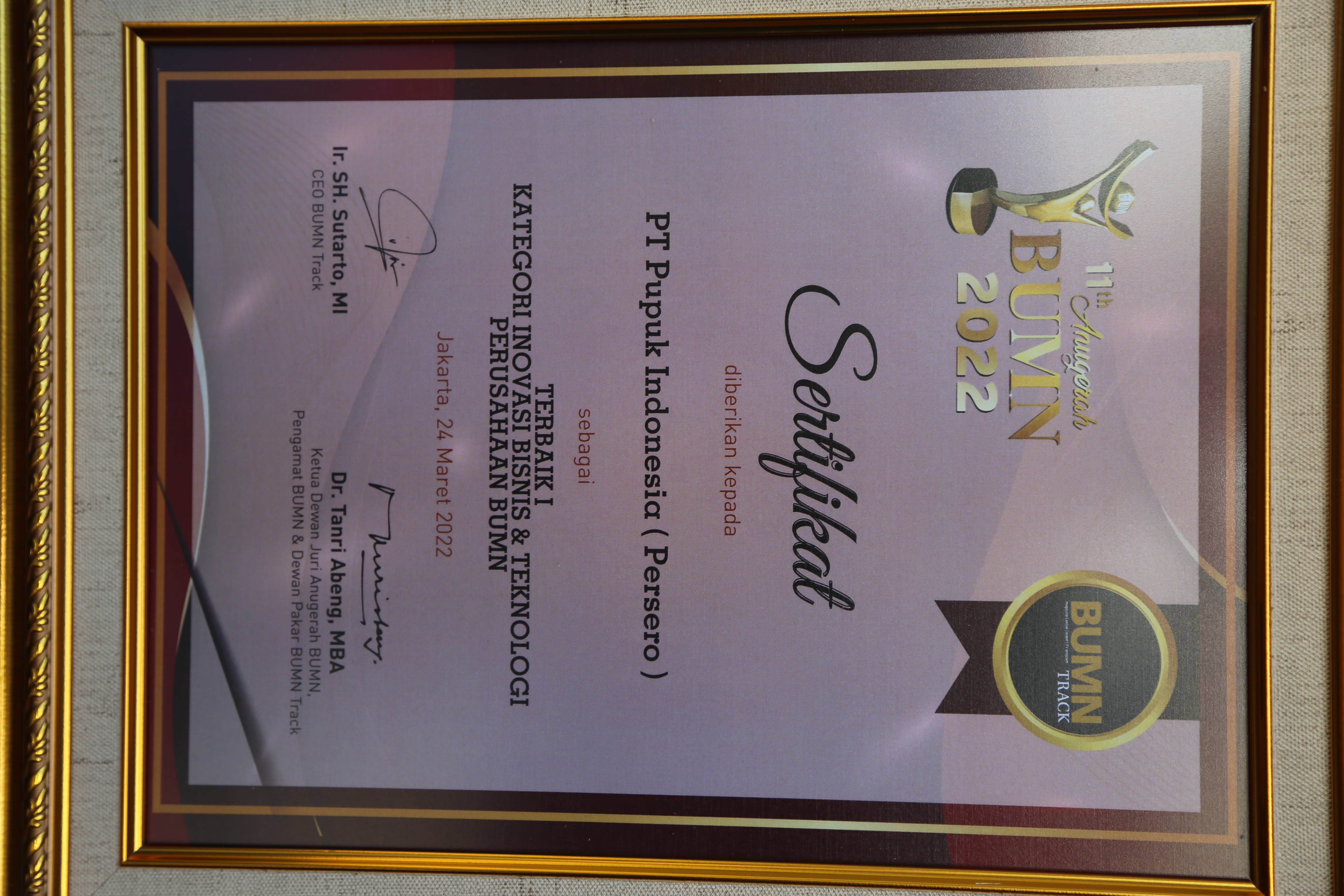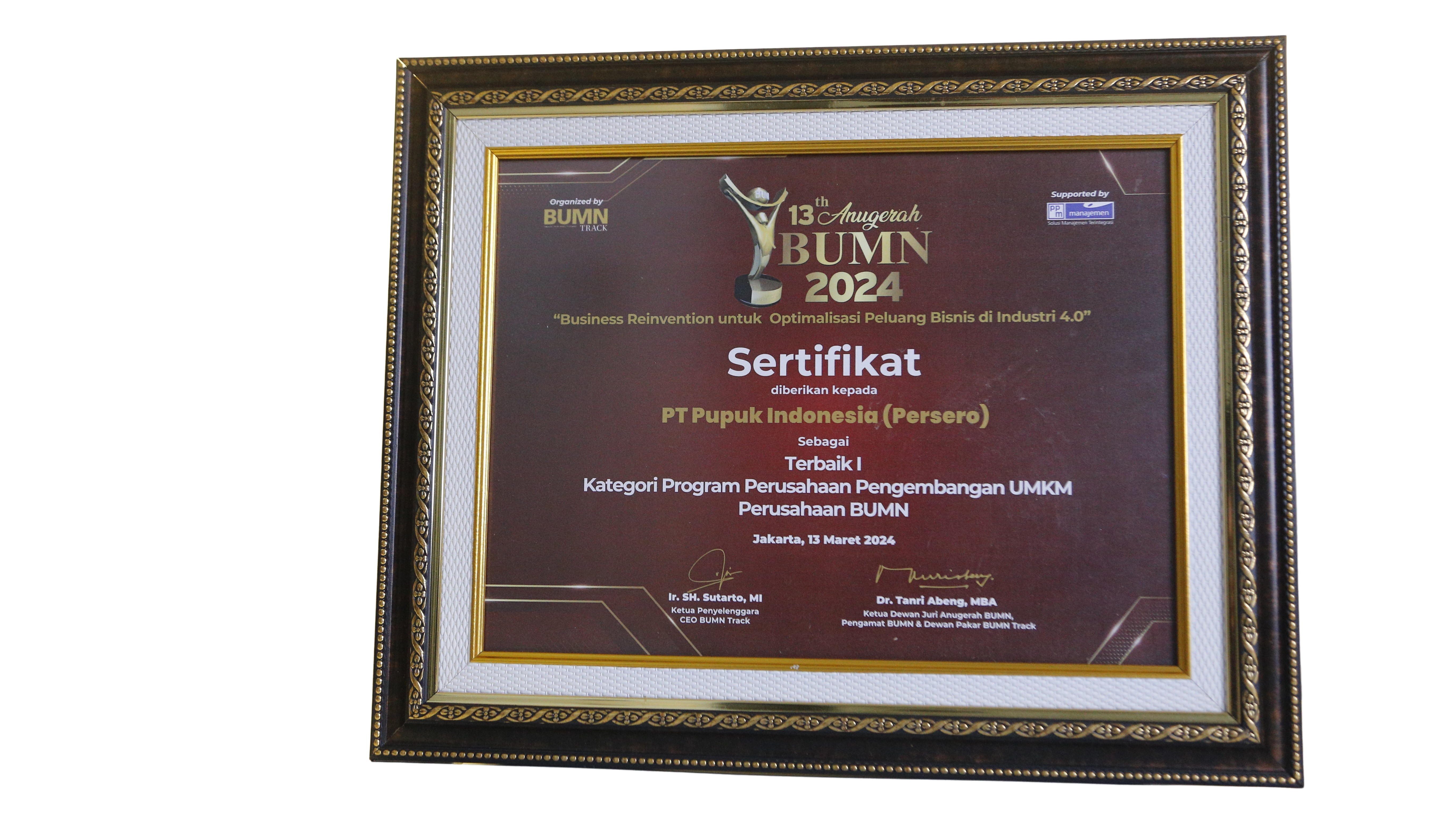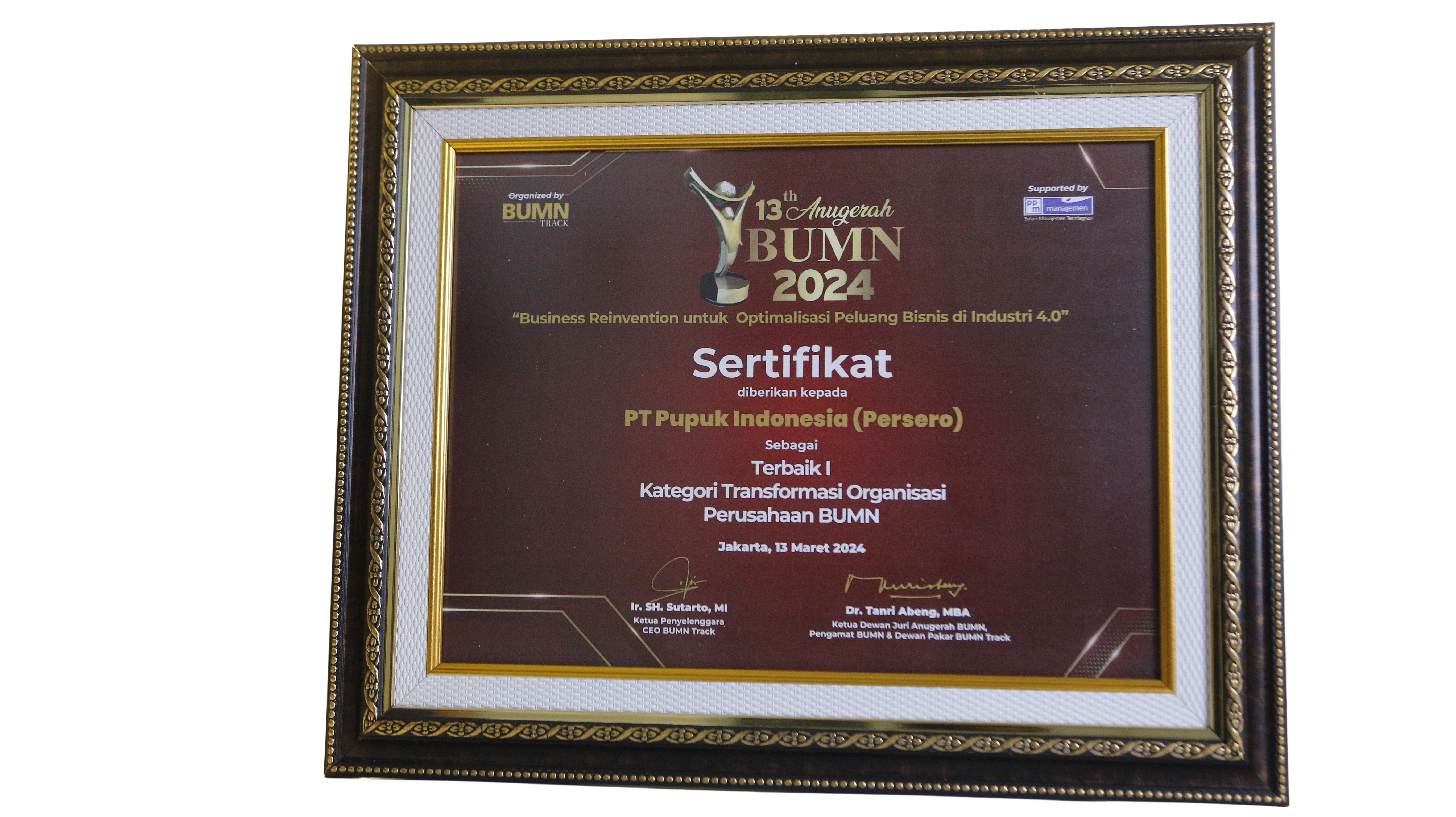 Anugerah BUMN 2025Kategori Strategi PertumbuhanTerbaik IPT Pupuk Indonesia (Persero)Jakarta, 20 Maret 2025BUMNTrack -