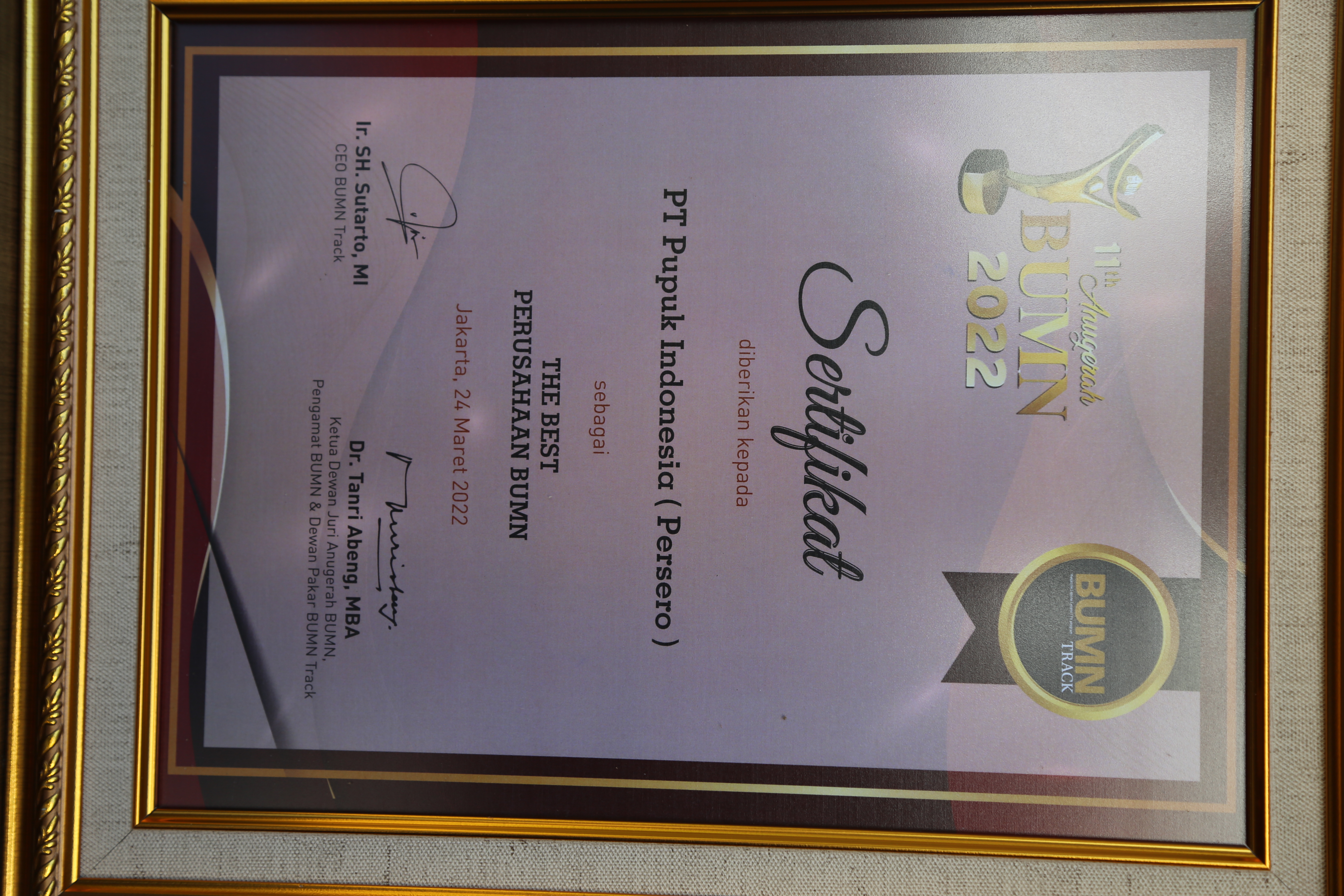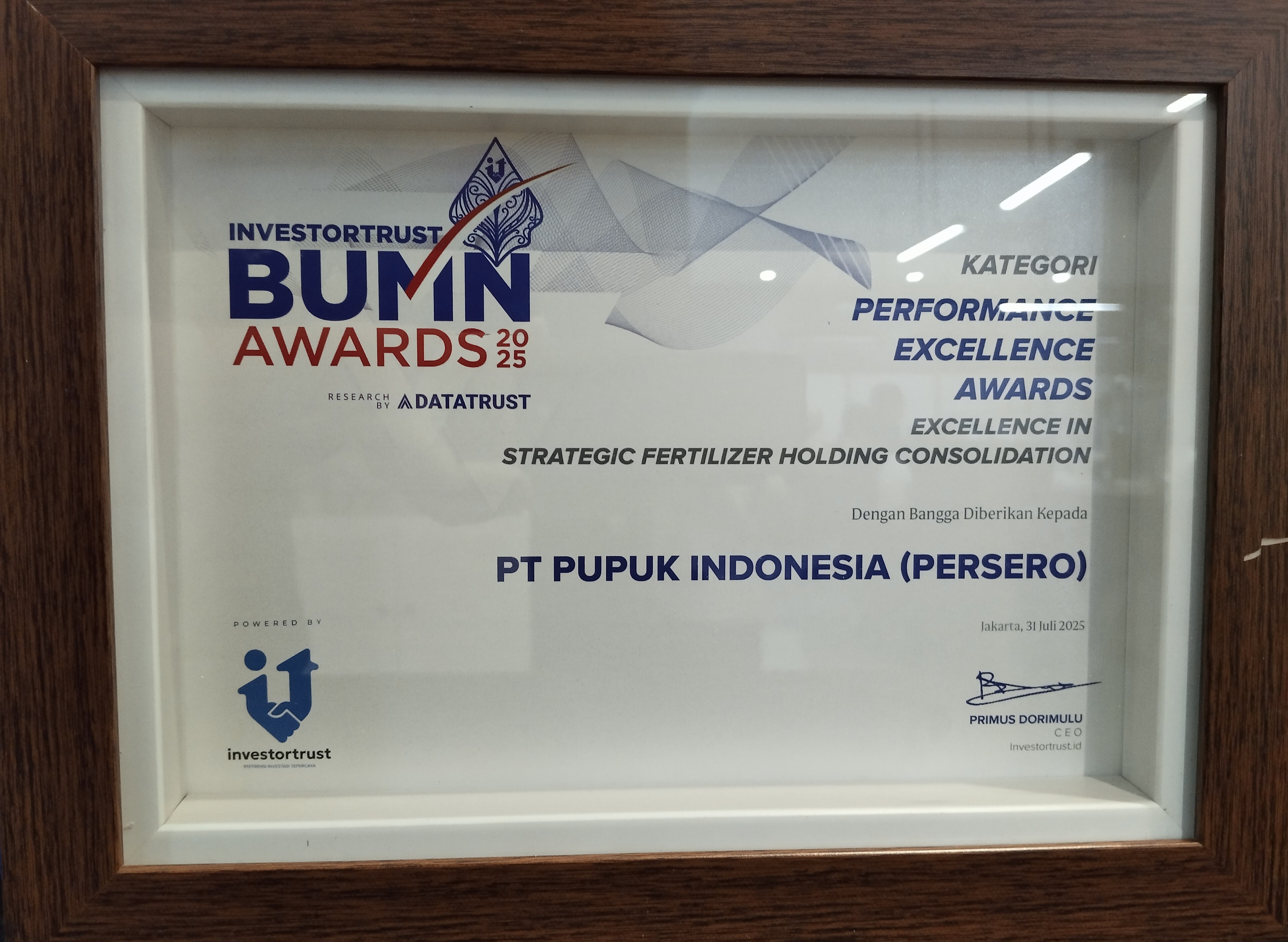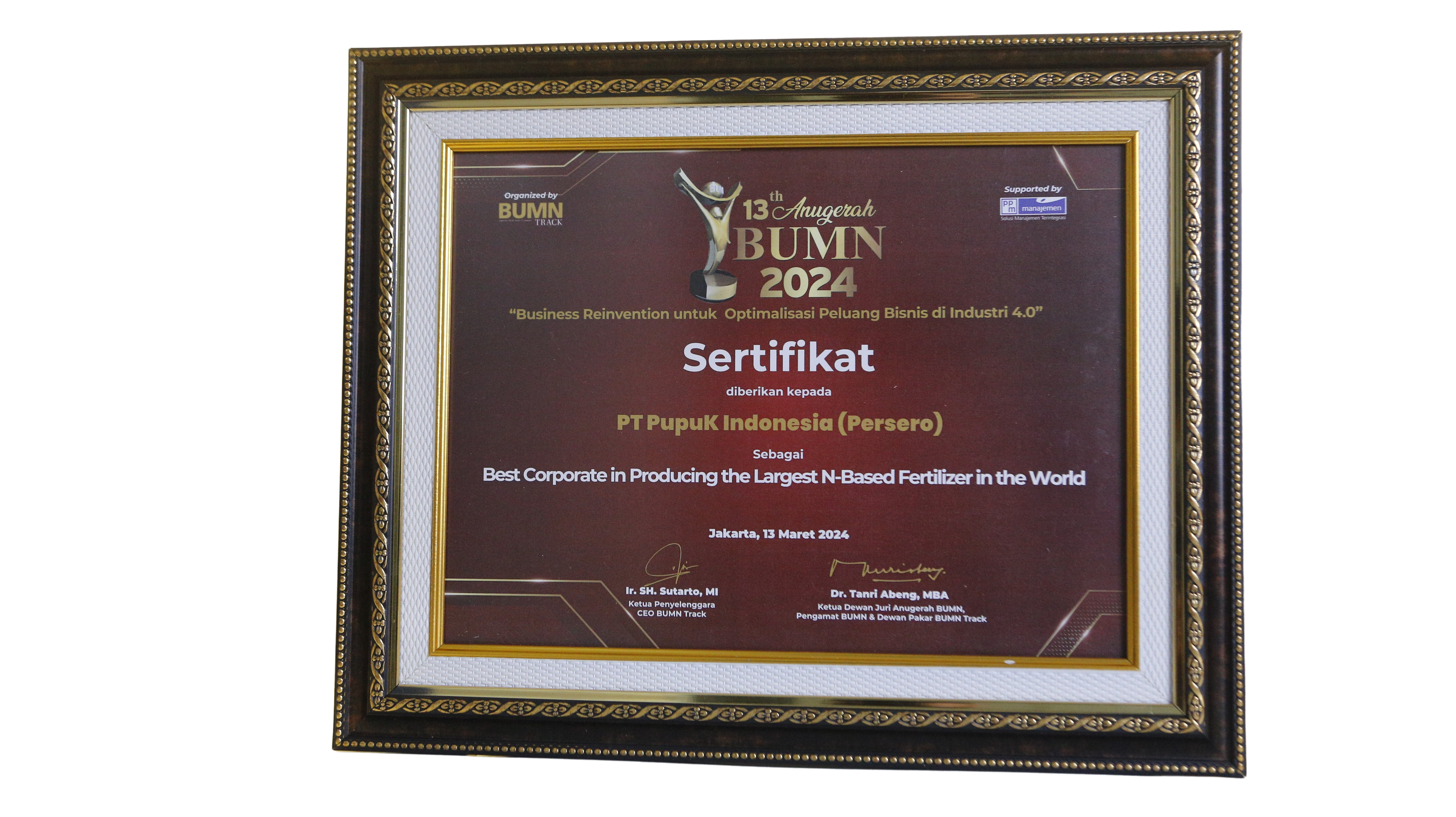 Anugerah BUMN 2025Kategori Strategi PertumbuhanTerbaik IPT Pupuk Indonesia (Persero)Jakarta, 20 Maret 2025BUMNTrack -