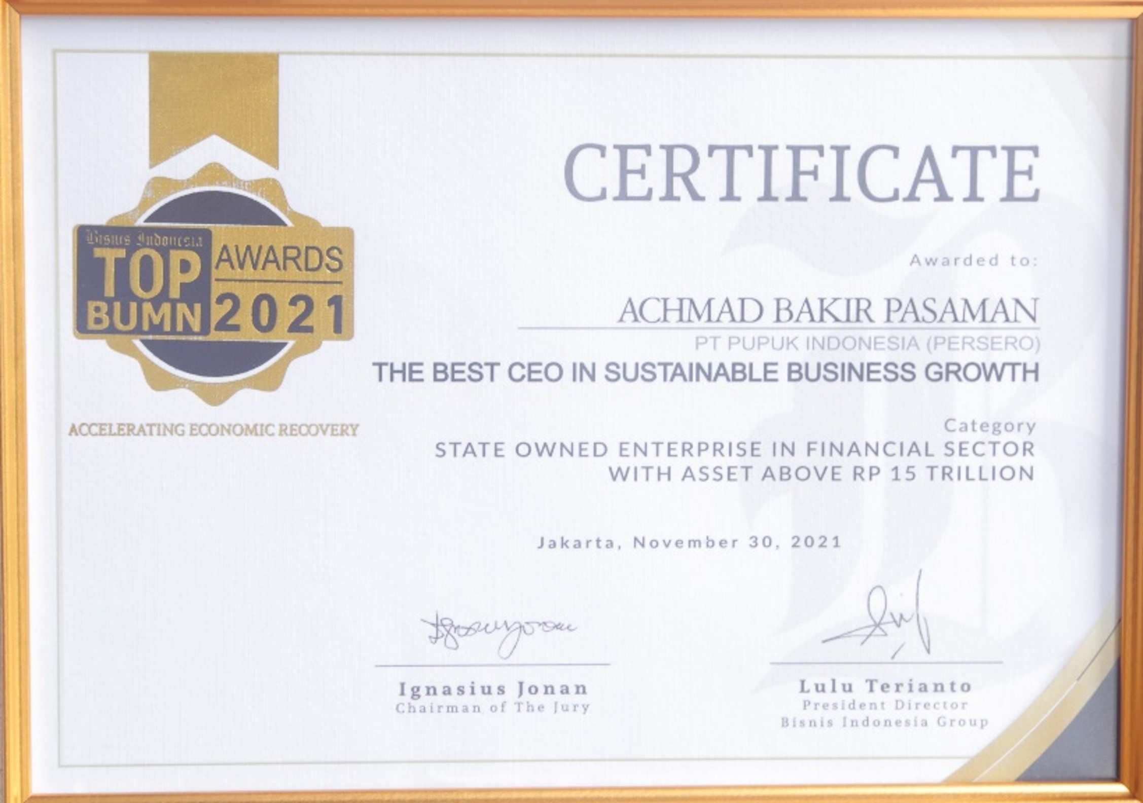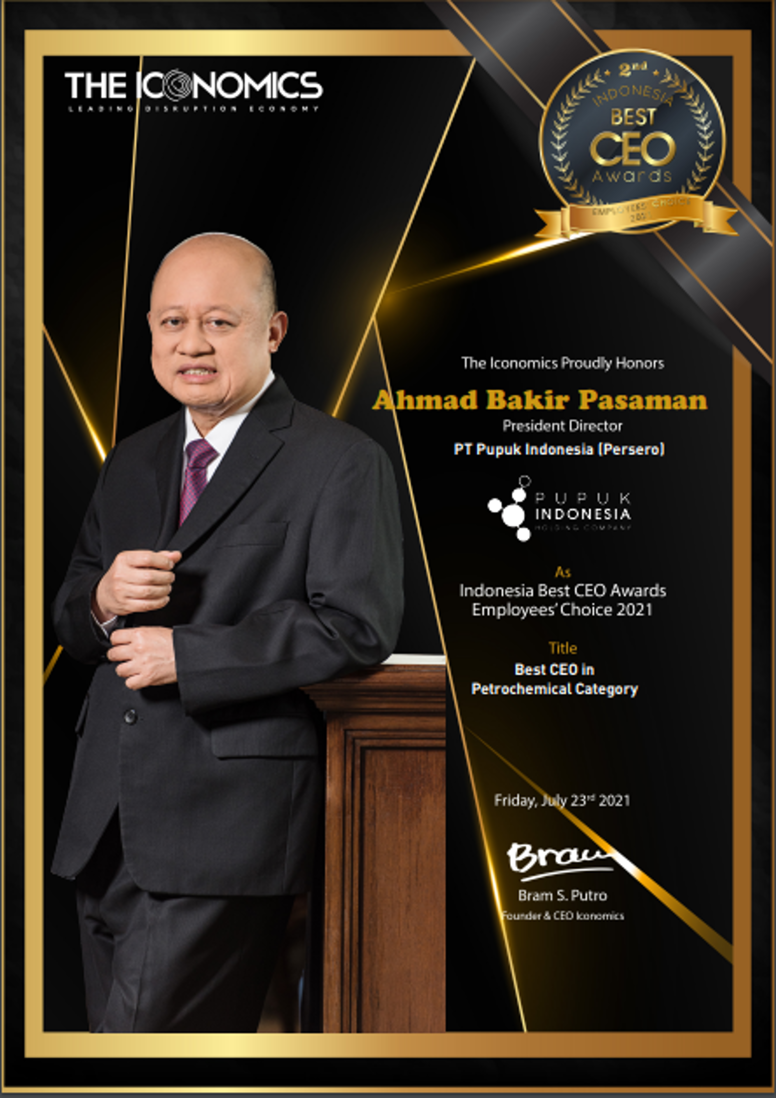 24 Maret 2022The Best CEO Perusahaan BUMN for A Bakir Pasaman Direktur Utama PT Pupuk Indonesia