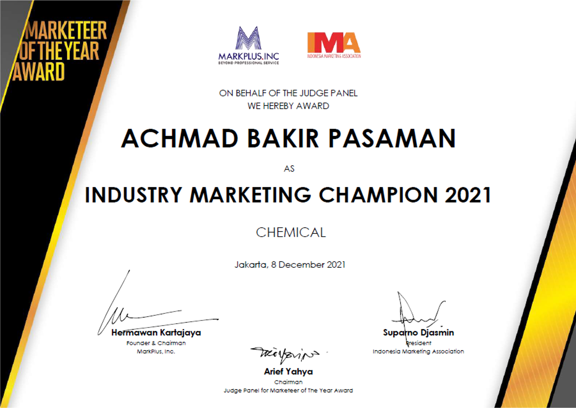 8 Desember 2021BEST INDUSTRY MARKETING CHAMPION 2021 for Chemical Sector