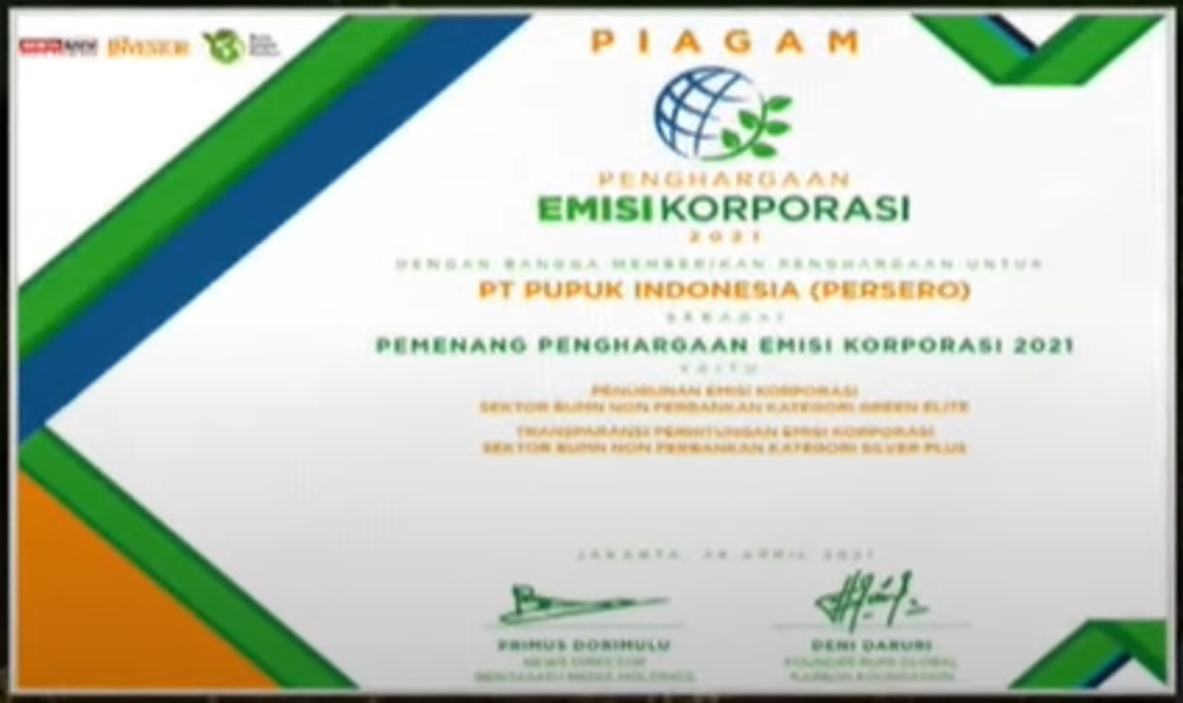 Sustainable Action For The Future EconomyChemical SectorGovernance ChampionPT Pupuk Indonesia (Persero) -