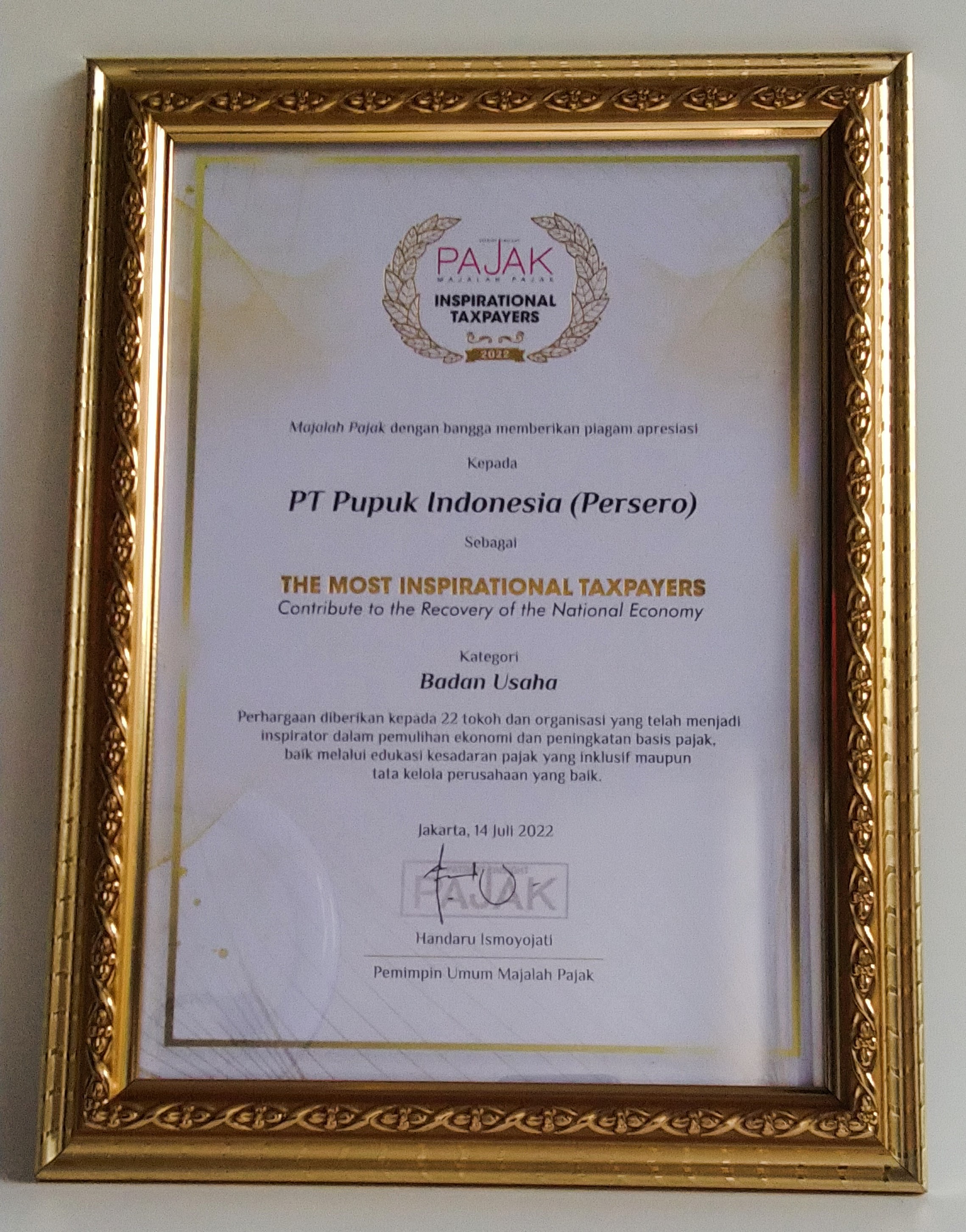 14 Juli 2022The Most Inspirational Taxpayer - Contribute To The Recovery Of The National Economy